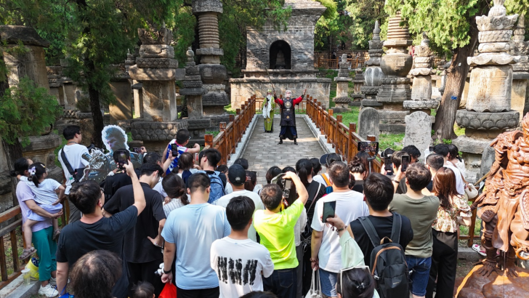 靈岩寺景區(qū)的微(wēi)演藝吸引大批遊客觀看(kàn)