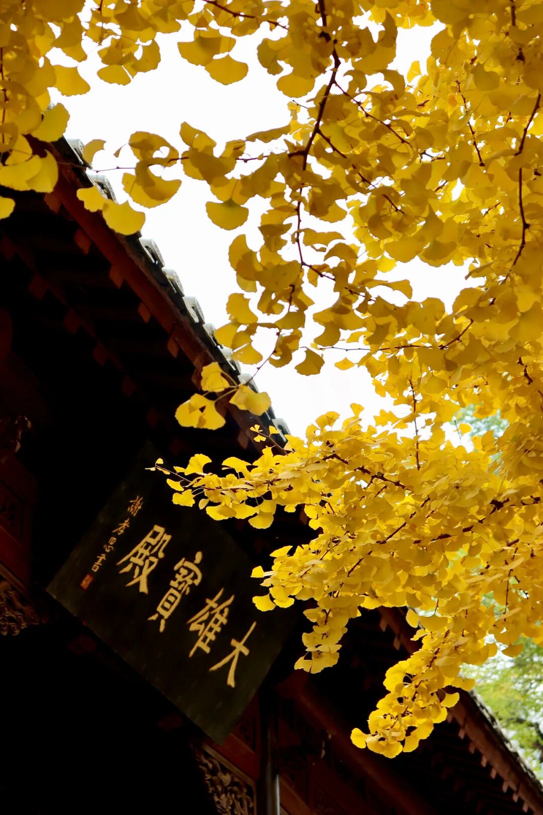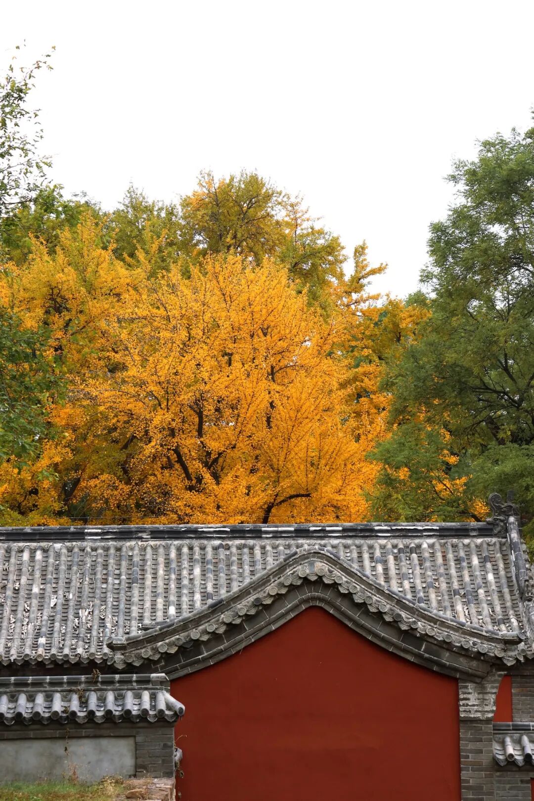 古樹(shù)、古寺、紅(hóng)牆、黃(huáng)葉
