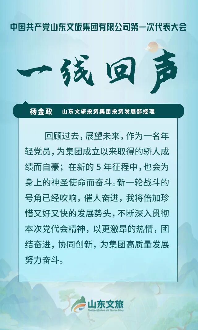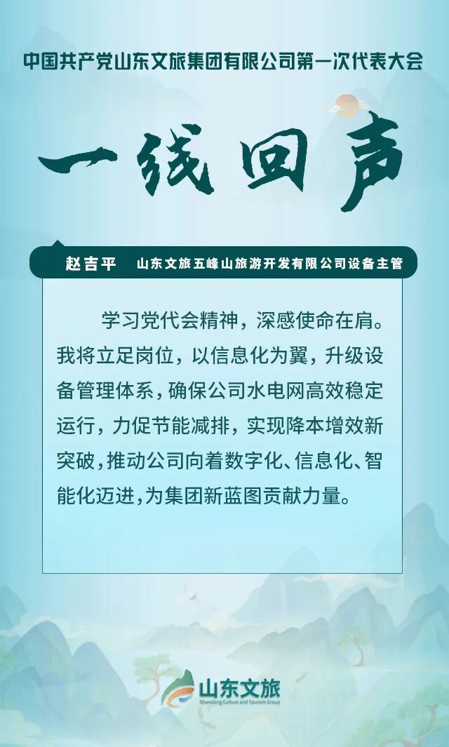 中國(guó)共産黨山(shān)東文旅集團有限公司第一(yī)次代表大會勝利召開(kāi)後,集團各單位掀起學習貫徹集團第一(yī)次黨代會精神熱(rè)潮,廣大一(yī)線職工(gōng)立足崗位,談感受、話未來、謀發展,為(wèi)打造全國(guó)一(yī)流文旅集團貢獻力量。