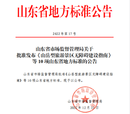 天蒙景區(qū)參與制定的山(shān)東省地(dì)方标準公告《山(shān)嶽型旅遊景區(qū)無障礙建設指南》在2023年(nián)1月就已經實施。