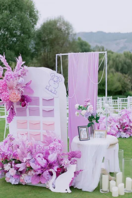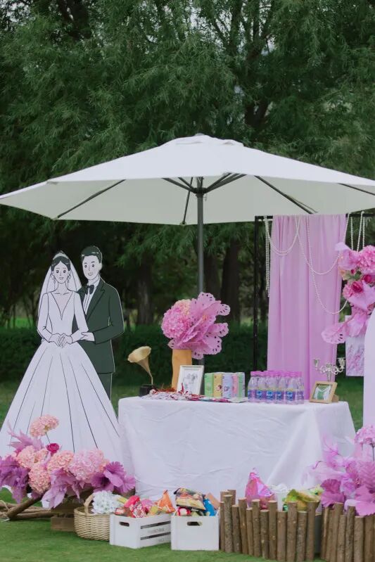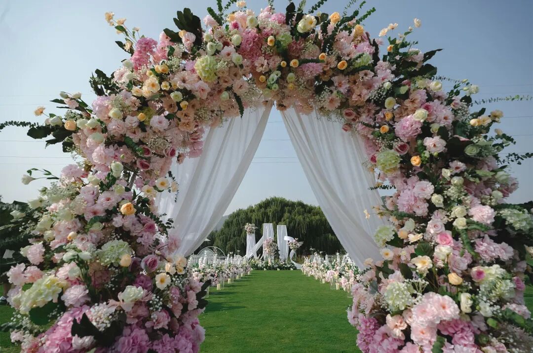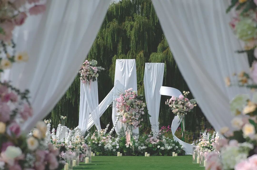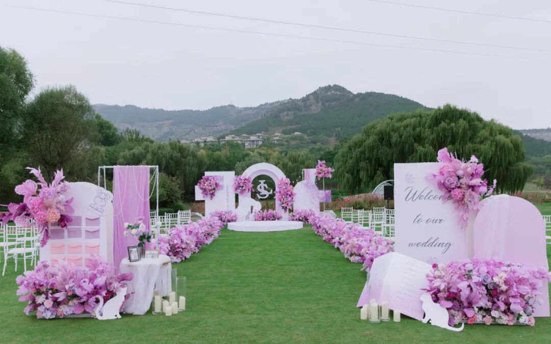 擇一(yī)片湖邊草坪或依山(shān)傍水,經過精心裝點,在陽光(guāng)、草地(dì)之中與親朋(péng)好友(yǒu)共同投入大自(zì)然的環抱,共享别緻的婚禮氛圍。