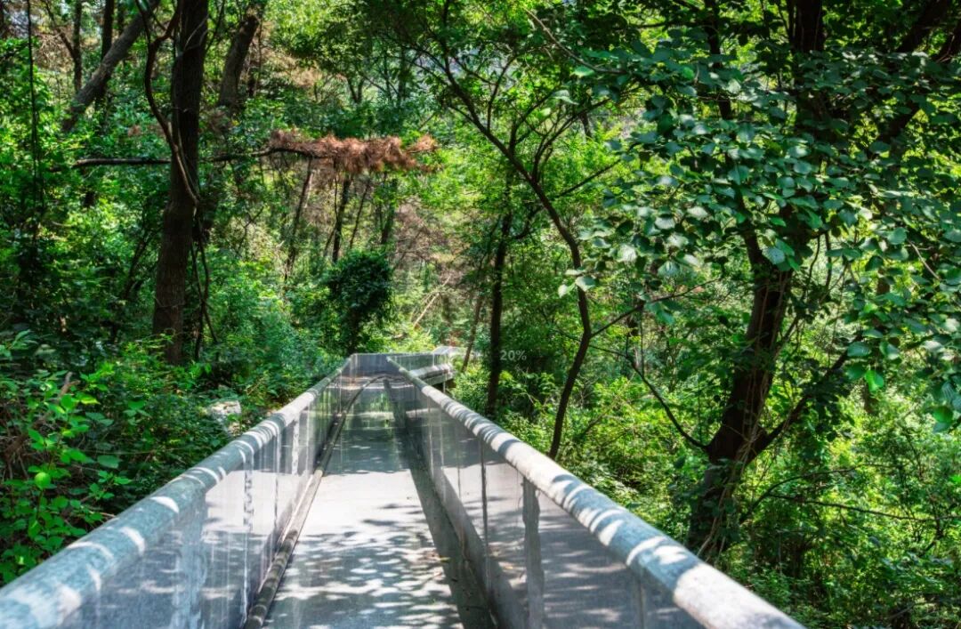 在綠(lǜ)色森林裏一(yī)路吸氧、一(yī)路觀景