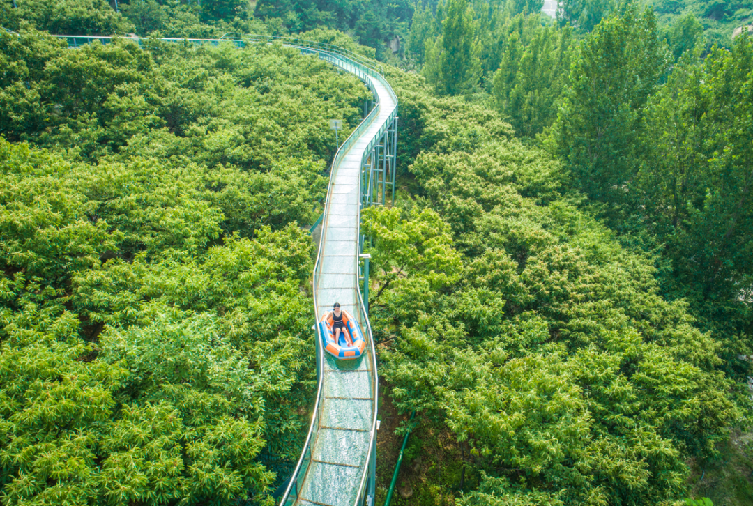 通(tōng)過滑索沿着山(shān)勢向下(xià)滑行(xíng)