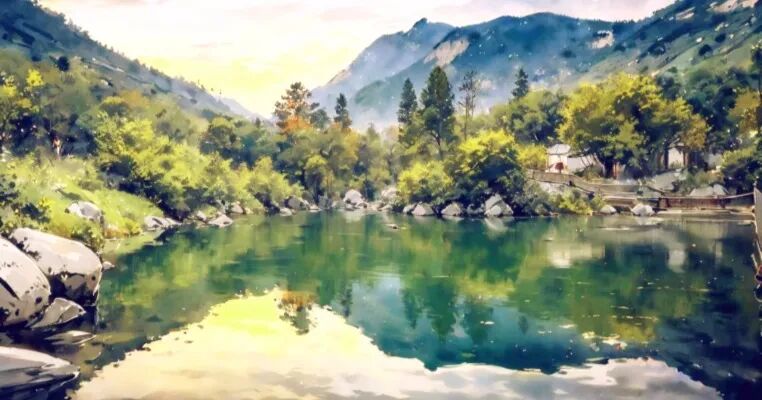 峻茂的山(shān)林,潺潺的水流