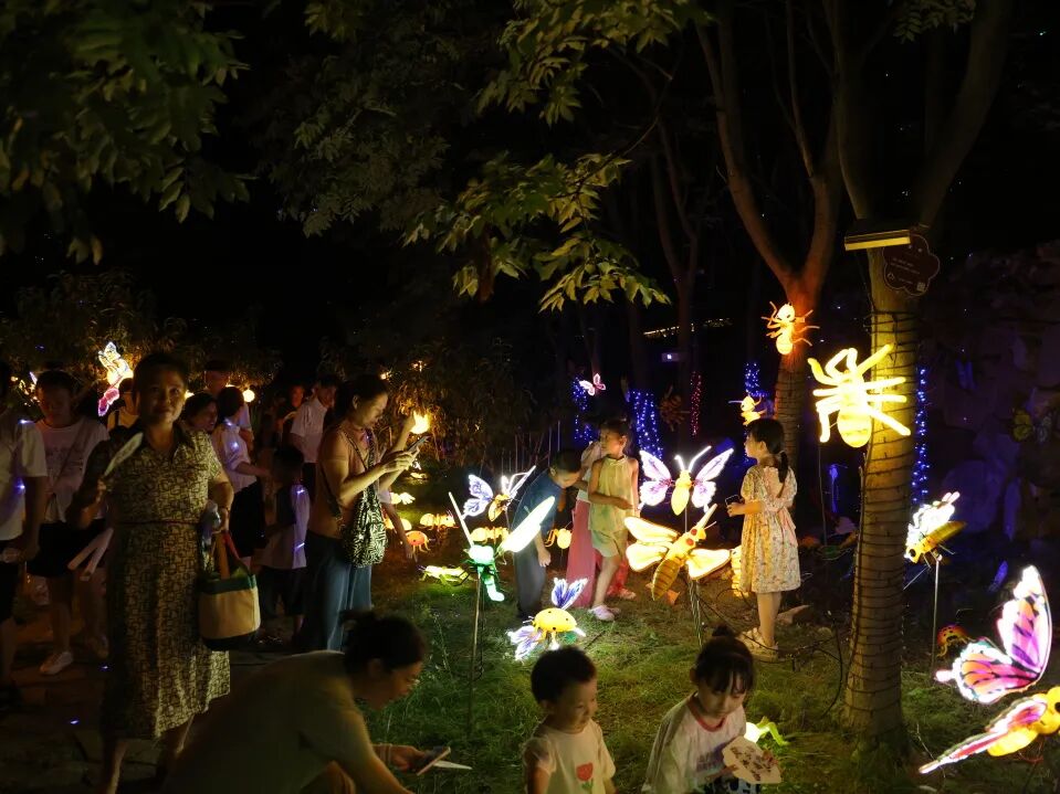 當星辰點綴着深邃的天幕,螢火(huǒ)蟲、蝴蝶等精靈,以燈光(guāng)裝置的形式,點亮自(zì)然之林。
