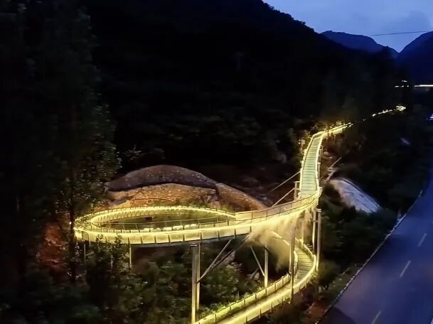 山(shān)體激光(guāng)秀,勾勒出山(shān)脈的輪廓,呈現生動的立體效果。